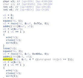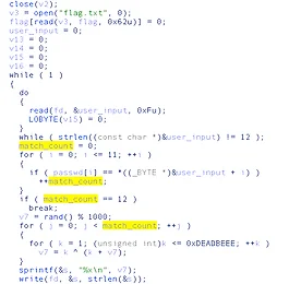 Volga CTF - exploitation 100 (Timing attack) 타이밍 어택 문제. password는 a-b, A-z, 0-9로 이루어진 12글자임을 가정하고 풀었다. 타이밍 어택 문제 password.txt로부터 읽어온 값과, 사용자가 입력한 값을 비교한다.2중 for문을 통하여 매치되는 수만큼 연산을 하는데, 로컬에서 구성한 환경으로일치하는 문자 1개당 26~29초 정도의 시간이 걸렸다. 모두 일치되지않는 값을 넣으면 0초대의 시간이 걸리는 점을 이용하여한글자씩 비교해가며 연산에 진행되는 시간을 통해 passwd를 맞췄다. 더보기 Plaid_CTF_2013 ropasaurusrex 로컬에서 실습환경을 구성한 뒤 풀었으므로,라이브러리 내의 주소값은 대회에서 제공한 라이브러리와 다르다. 더보기 CSAW_2012 exploitation 500 더보기 CSAW_2012 exploitation 400 실제 대회에서 환경이 어땠는지는 모르겠지만, ASLR이 걸린 리모트 환경에서 풀어보았다.fork()함수의 특징을 이용하여..포맷스트링버그 문제지만, ASLR이 걸렸을때 스택상의 RET의 주소값과 쉘코드의 주소값을 구하는 방법으로 메모리릭을 통해 얻은 값중, 특정 위치(순서)의 값을 기준으로 오프셋을 통해 주소값을 계산함. 더보기 CSAW_2012 exploitation 300 더보기 CSAW_2012 exploitation 200 더보기 CodeGate_2013 vuln_400 보호되어 있는 글입니다. 더보기 CSAW2013_exploitation_diary_300 취약점 부분. signed인 a2를 +1해서 unsigned int로 형변환한다. 더보기 CodeGate_2014 4stone 취약점 부분 - 0초 안에 게임을 이길경우, argv[1]이 가리키는 주소를 덮어쓸 수 있다. 더보기 CodeGate_2013_vuln 100 보호되어 있는 글입니다. 더보기 이전 1 2 3 다음